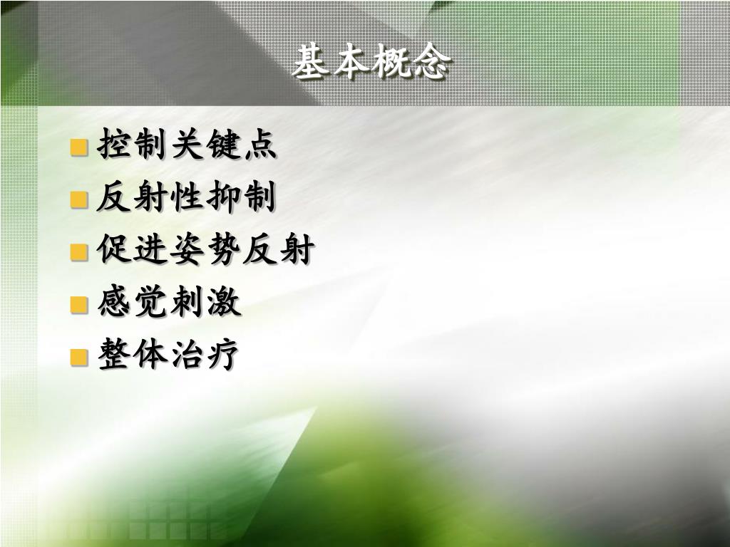 基本概念 控制关键点 反射性抑制 促进姿势反射 感觉刺激 整体治疗