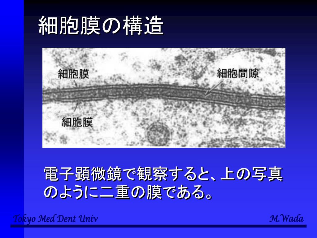 個体と多様性の 生物学. 第1回 多細胞生物への道 ー細胞間の情報交換. 和田 勝. 東京医科歯科大学教養部. 今回のお話の舞台. 細胞膜の構造. 電子顕微鏡で観察すると、上の写真のように二重の膜である。. 細胞膜の構成要素. 脂質とタンパク質から構成される。. 脂質は以下のように分類できる. トリアシルグリセロールなどの中性脂肪. 単純脂質. 複合脂質. グリセロリン脂質、グリセロ糖脂質など. 誘導脂質. H H-C-OH H-C-OH H-C-OH H. O R 1 -C O -. O R 2 -C O -. O