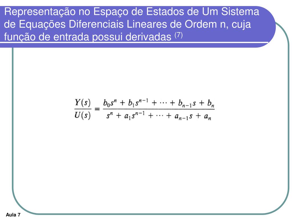 Representação no Espaço de Estados de Um Sistema de Equações Diferenciais Lineares de Ordem n, cuja função de entrada possui derivadas (7)