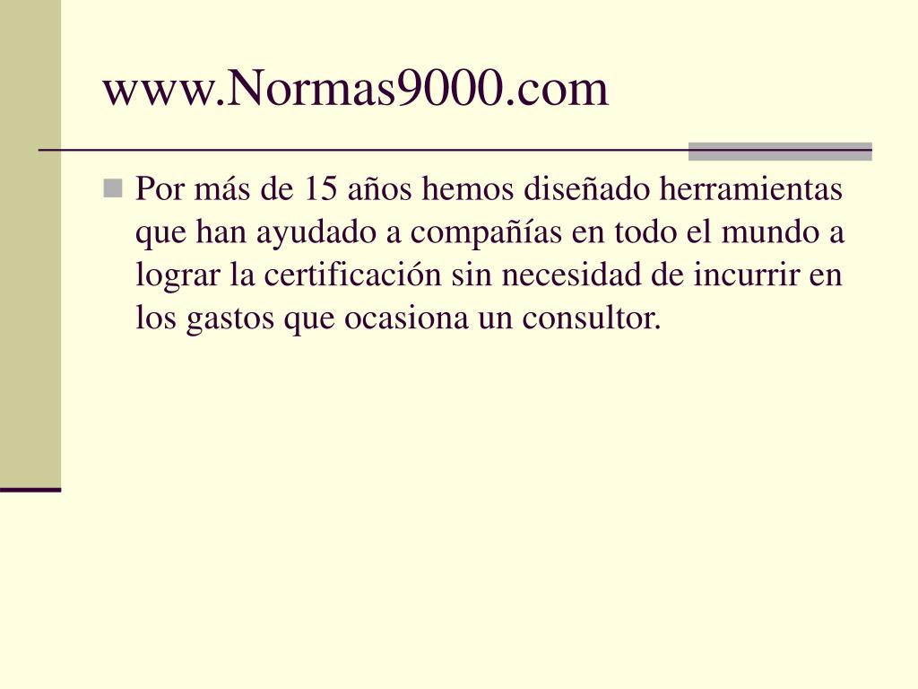 www.Normas9000.com • Por más de 15 años hemos diseñado herramientas que han ayudado a compañías en todo el mundo a lograr la certificación sin necesidad de incurrir en los gastos que ocasiona un consultor.