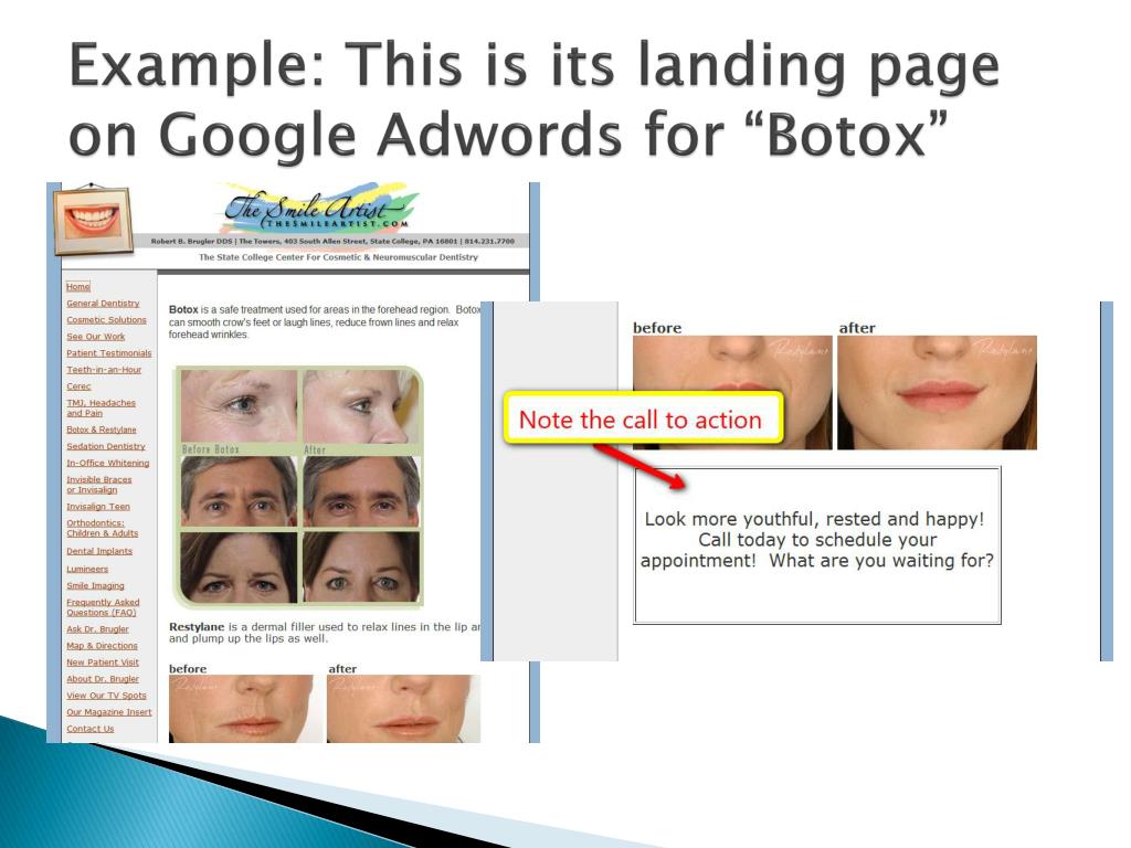 Relevant Headline • IMPORTANT: Does the headline on your landing page refer directly to the ad copy that brought the visitor? • This is critical to avoid visitor confusion and bounce. • This is the most important element of your landing page, but also very commonly ignored in practice. • Also the reason why ideally we should have custom landing pages for every ad that we write.