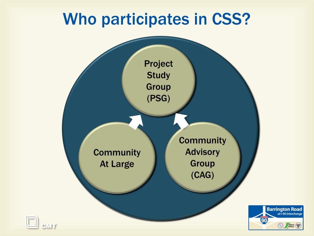 Who participates in CSS? Project Study Group (PSG) Community At Large Community Advisory Group (CAG)
