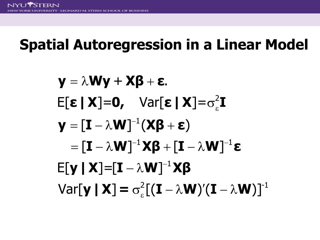 Complications of the Generalized Regression Model Potentially very large N – GPS data on agriculture plots Estimation of . There is no natural residual based estimator Complicated covariance structure – no simple transformations