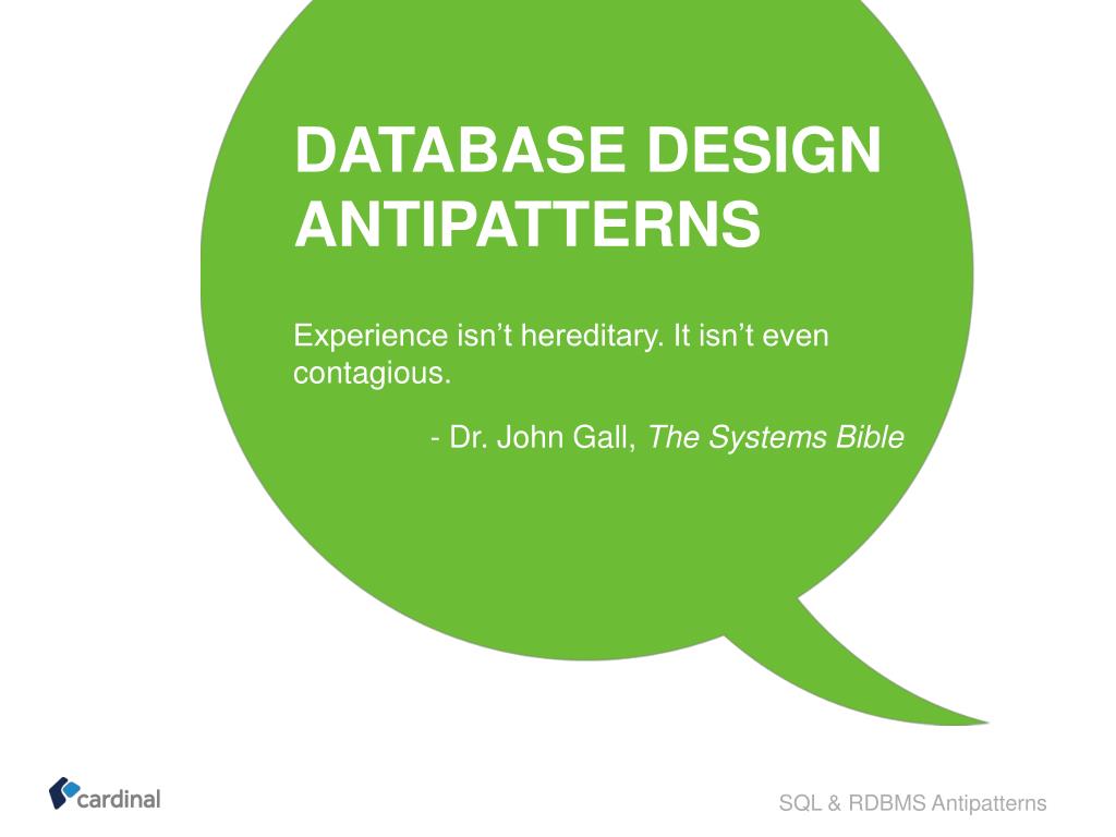 Database DESIGN Antipatterns Experience isn’t hereditary. It isn’t even contagious. - Dr. John Gall, The Systems Bible