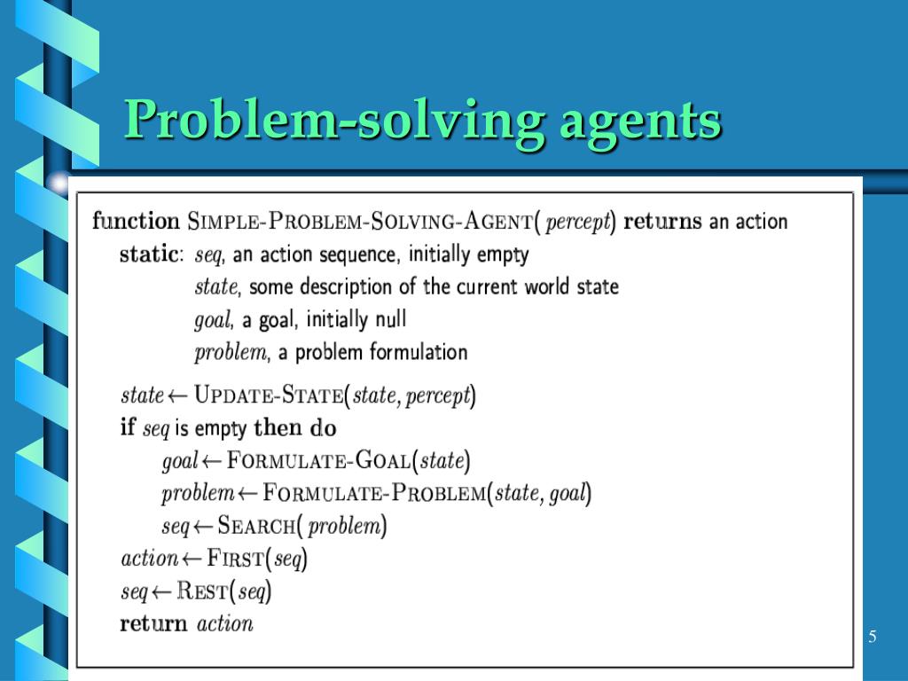 Out Line : • Problem-solving agents • Problem types • Problem formulation • Example problems • Basic search algorithms