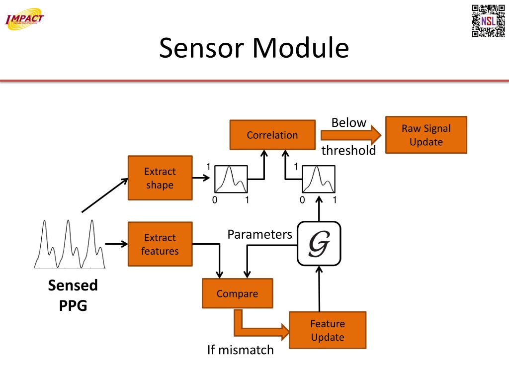 Sensor Module Below Raw Signal Update 1 1 Correlation threshold Extract shape 0 0 1 1 Extract features Parameters Sensed PPG Compare Feature Update If mismatch