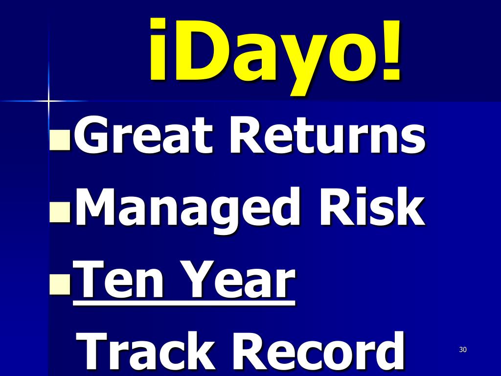 iDayo! • Great Returns • Managed Risk • Ten Year Track Record