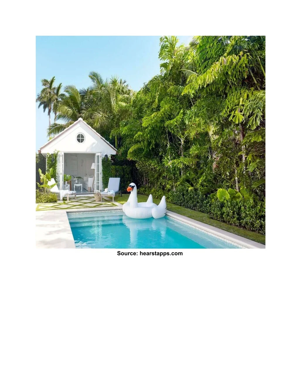 All this combinedly forms a beautifully rustic and farmhouse look to your swimming pool. It can also be an option for pool party themes for adults. Moreover, you can organize a beach theme with this look. Give It a Blue And Cool Look With A Touch Of White: Source: hearstapps.com Well! Blue and white both the colors are often known for their cool and calming nature. They are often considered to be cool calm tones. You can add a combination of these colors to make it look even more gorgeous and eye-catching. For this look, you can add blue-colored furniture within white surroundings. Or you can also do it oppositely for a more enticing option. This combination will generate an even more cool breeze into your poolside area.
