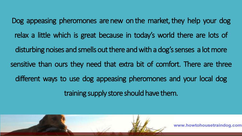 Dog appeasing pheromones are new on the market, they help your dog relax a little which is great because in today’s world there are lots of disturbing noises and smells out there and with a dog’s senses a lot more sensitive than ours they need that extra bit of comfort. There are three different ways to use dog appeasing pheromones and your local dog training supply store should have them.