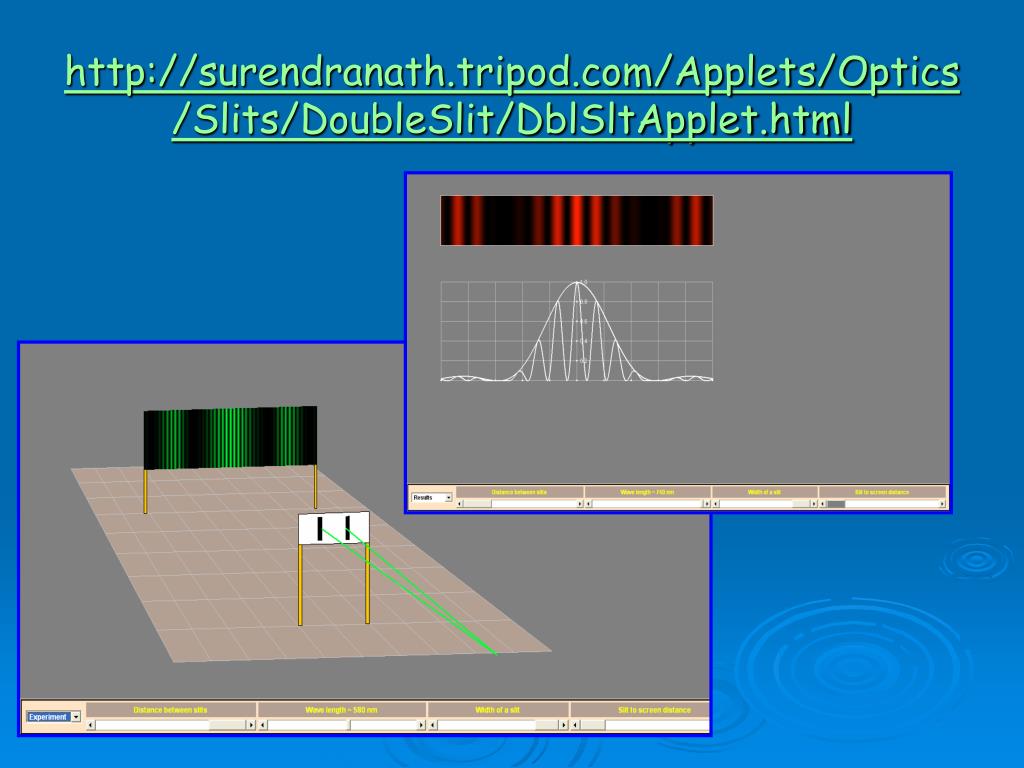 http://surendranath.tripod.com/Applets/Optics/Slits/DoubleSlit/DblSltApplet.htmlhttp://surendranath.tripod.com/Applets/Optics/Slits/DoubleSlit/DblSltApplet.html