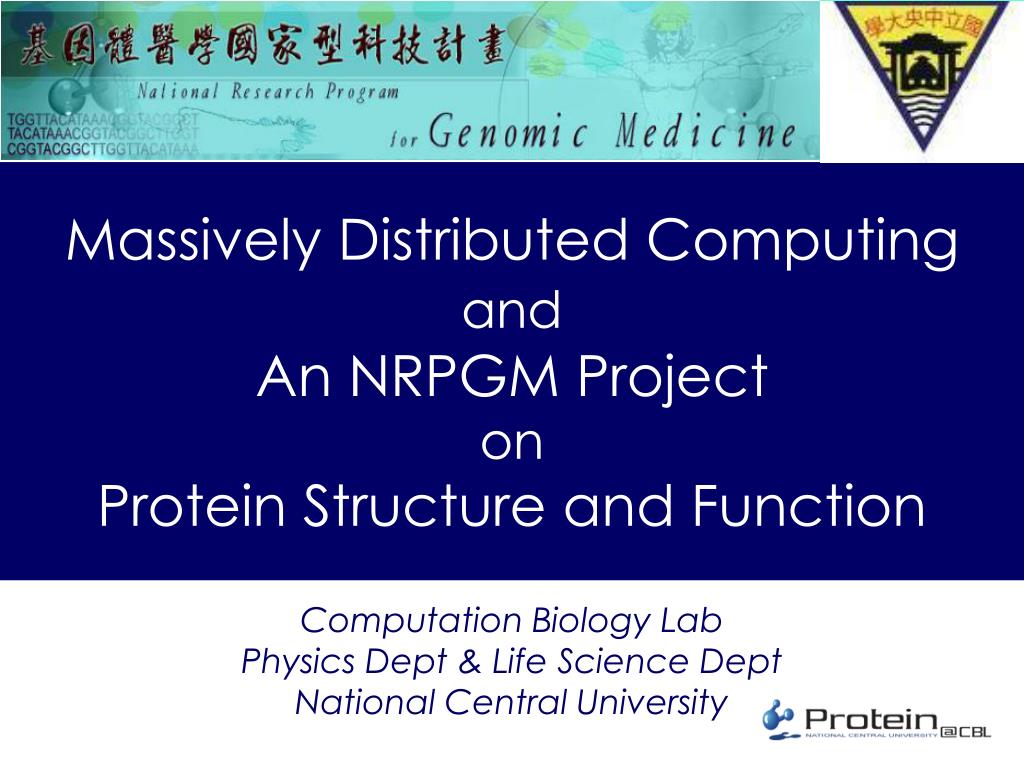 Massively Distributed ComputingandAn NRPGM ProjectonProtein Structure and Function Computation Biology LabPhysics Dept & Life Science DeptNational Central University