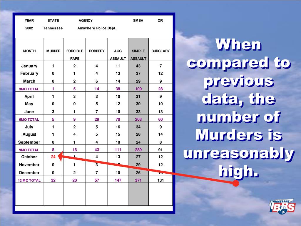 When compared to previous data, the number of Murders is unreasonably high.