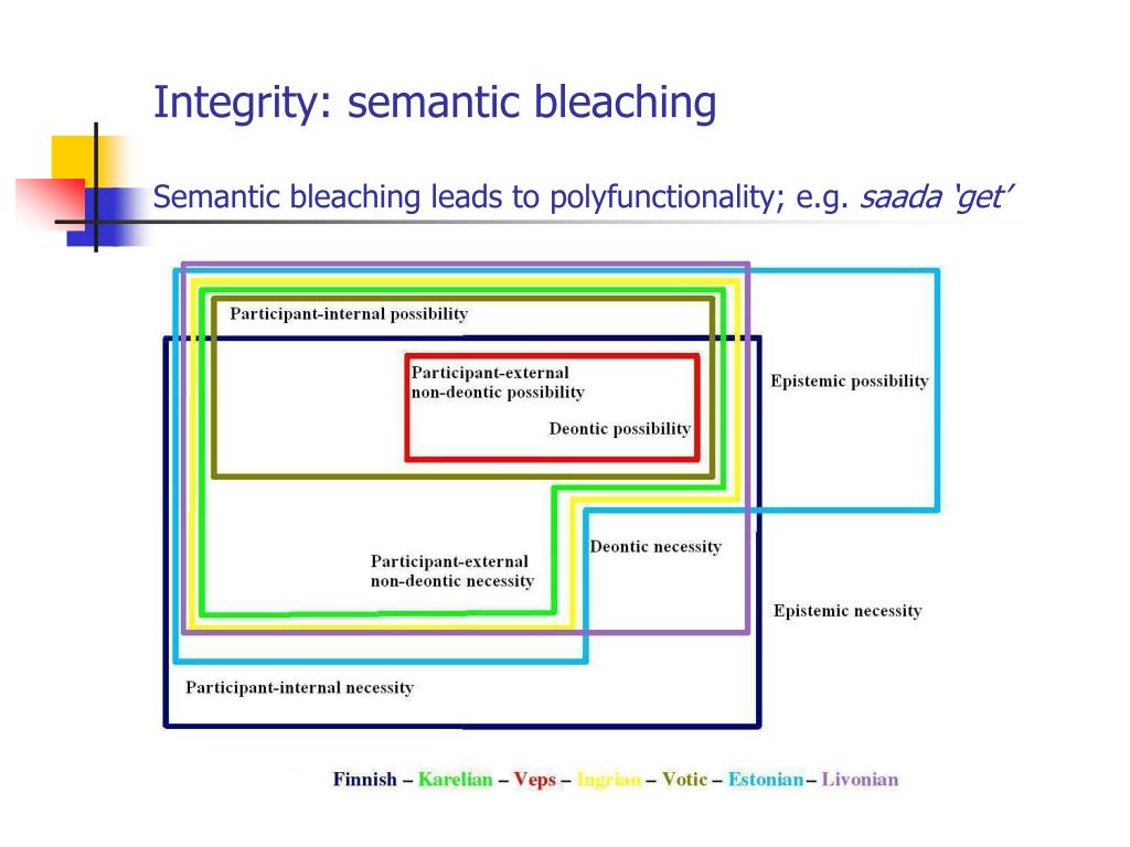 Integrity: semantic bleachingSemantic bleaching leads to polyfunctionality; e.g. saada ‘get’