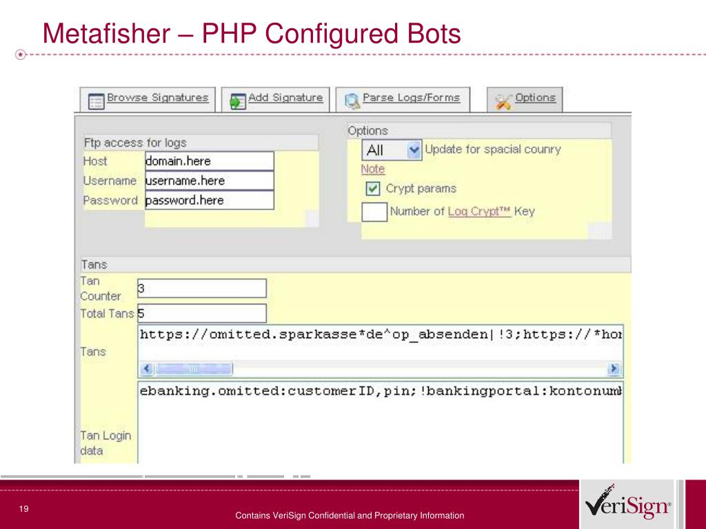 Metafisher – PHP Configured Bots Contains VeriSign Confidential and Proprietary Information