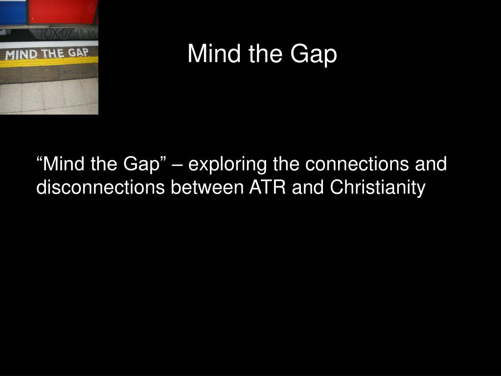 Mind the Gap • “Mind the Gap” – exploring the connections and disconnections between ATR and Christianity