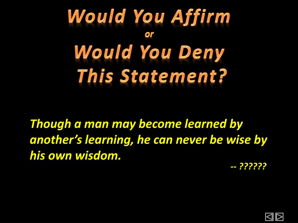 Would You Affirm or Would You Deny This Statement? Though a man may become learned by another’s learning, he can never be wise by his own wisdom. -- Noah Webster -- ??????