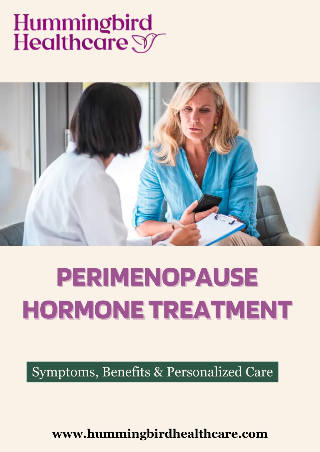 <br>Perimenopause begins when hormone levels stop following a steady pattern. Estrogen and progesterone rise and fall, which can affect sleep, mood, weight, and focus. Hummingbird Healthcare explains Perimenopause Hormone Treatment by showing how these hormone shifts impact daily life. The information helps women understand why symptoms appear and how treatment works to support balance. It focuses on education and awareness, helping women recognize changes early and explore care options with confidence.<br>