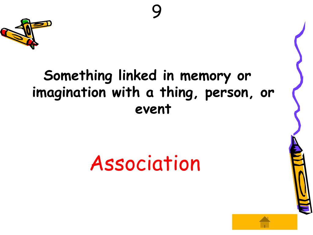 9 Something linked in memory or imagination with a thing, person, or event Association