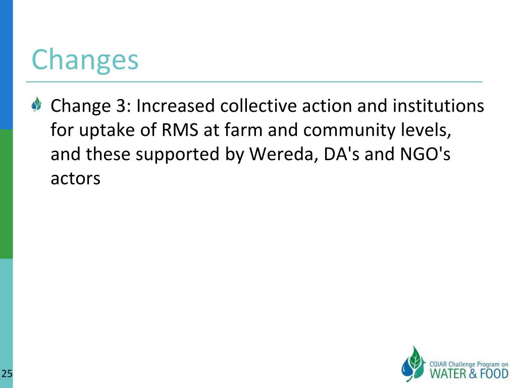 Changes • Change 3: Increased collective action and institutions for uptake of RMS at farm and community levels, and these supported by Wereda, DA's and NGO's actors
