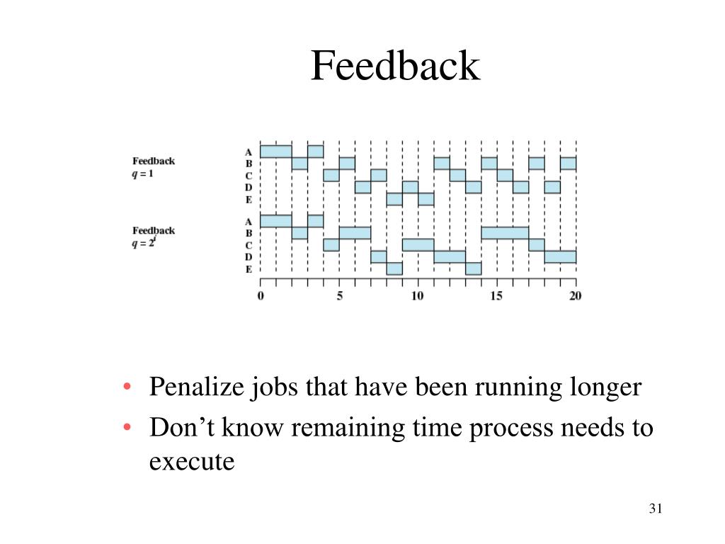 Feedback • Penalize jobs that have been running longer • Don’t know remaining time process needs to execute