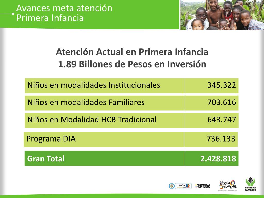 Avances meta atención Primera Infancia Atención Actual en Primera Infancia 1.89 Billones de Pesos en Inversión