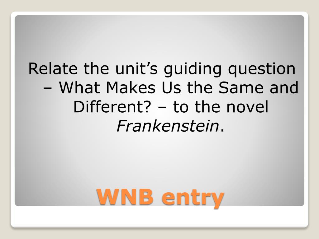 Relate the unit’s guiding question – What Makes Us the Same and Different? – to the novel Frankenstein. WNB entry