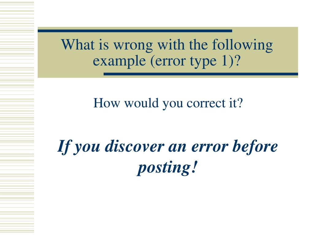 What is wrong with the following example (error type 1)? How would you correct it? If you discover an error before posting!