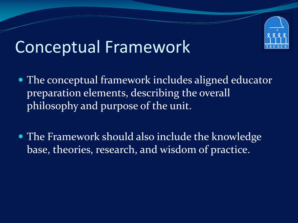 Conceptual Framework • The conceptual framework includes aligned educator preparation elements, describing the overall philosophy and purpose of the unit. • The Framework should also include the knowledge base, theories, research, and wisdom of practice.