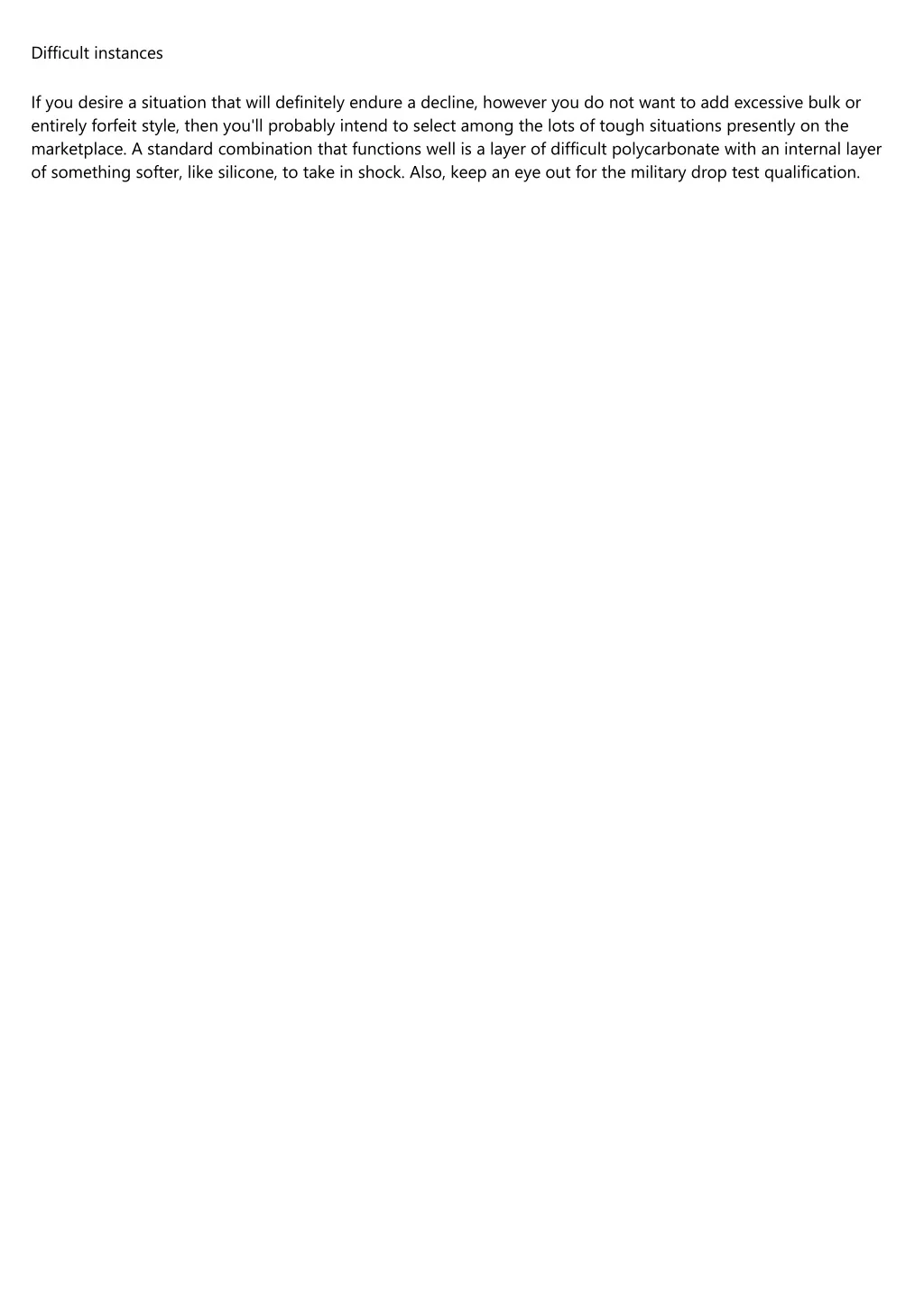 Difficult instances If you desire a situation that will definitely endure a decline, however you do not want to add excessive bulk or entirely forfeit style, then you'll probably intend to select among the lots of tough situations presently on the marketplace. A standard combination that functions well is a layer of difficult polycarbonate with an internal layer of something softer, like silicone, to take in shock. Also, keep an eye out for the military drop test qualification.