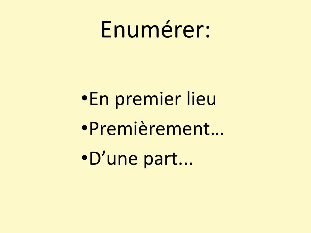 Enumérer: • En premier lieu • Premièrement… • D’unepart...