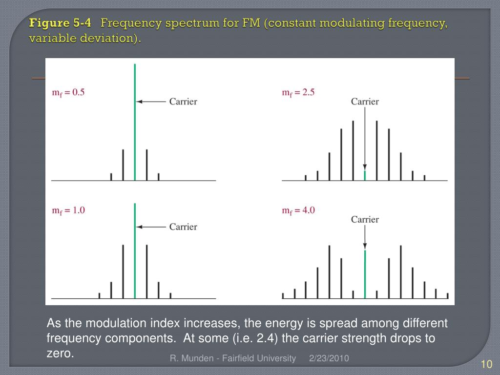 5-3 FM Analysis • For PM • mp is the modulation index for PM • For FM • mf is the modulation index for FM R. Munden - Fairfield University