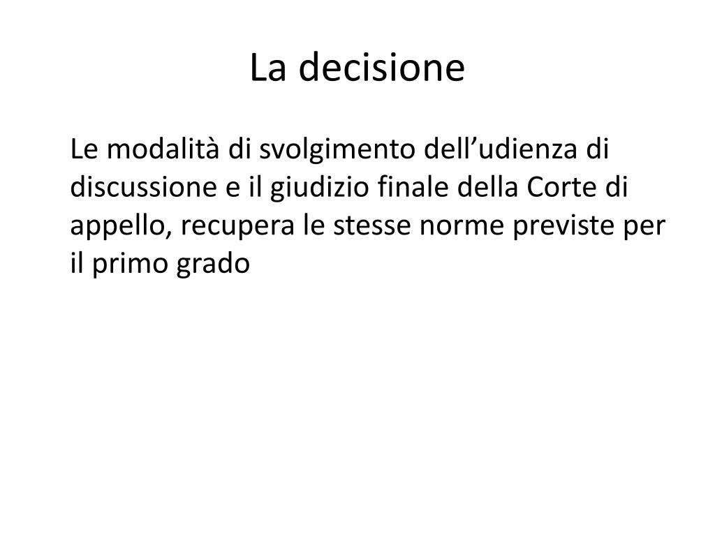 La decisione Le modalità di svolgimento dell’udienza di discussione e il giudizio finale della Corte di appello, recupera le stesse norme previste per il primo grado
