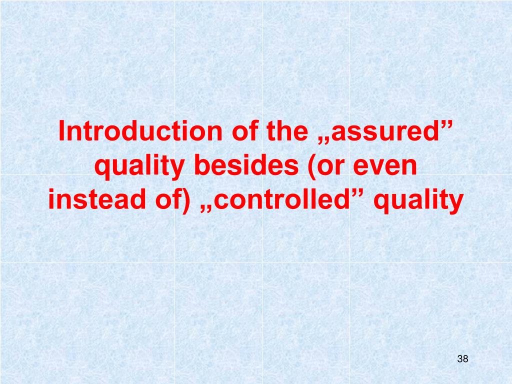 Introduction of the „assured” quality besides (or even instead of) „controlled” quality