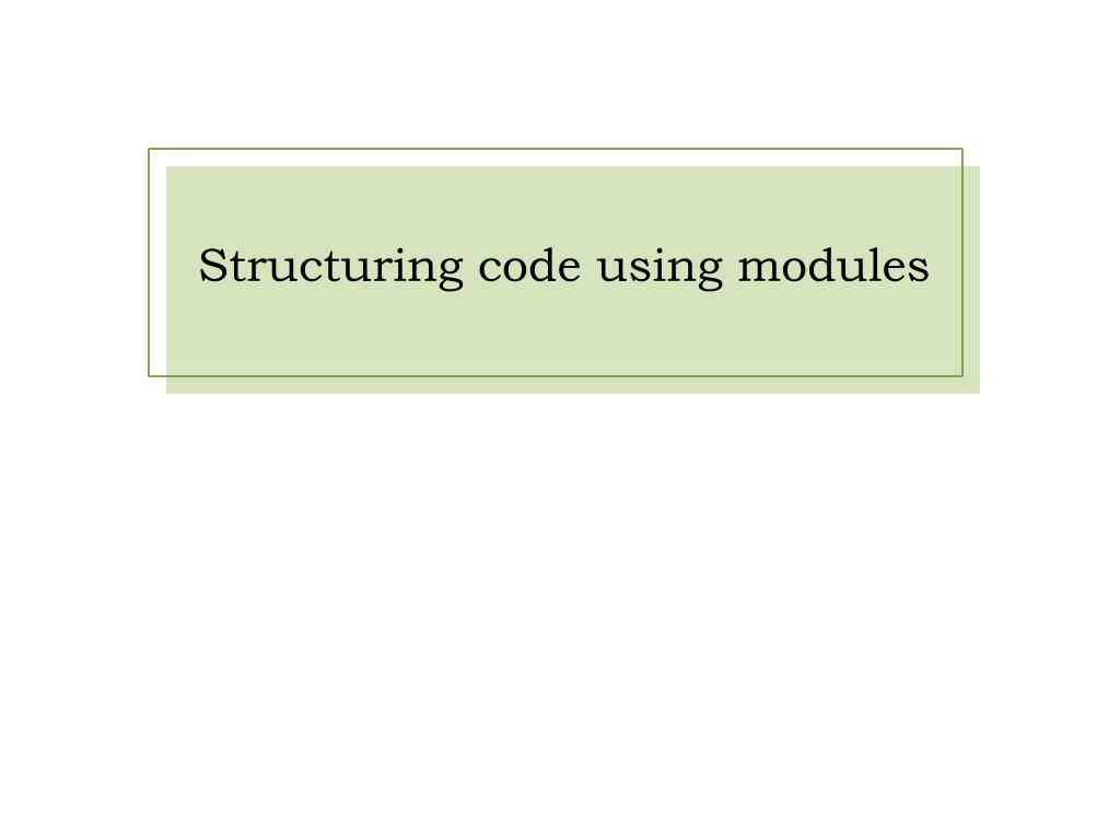Organizing code • Grouping related functionality together For example objects in C#, modules in Pascal, … How to do this with functions? • In F#, we can use modules… Groups related functions into a single “unit” Modules do not have any private state (… but F# supports object-oriented style too)