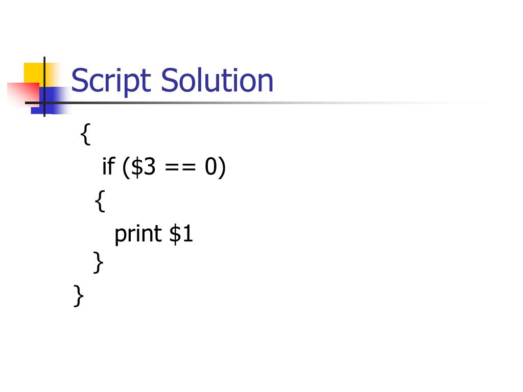 Script Solution { if ($3 == 0) { print $1 } }