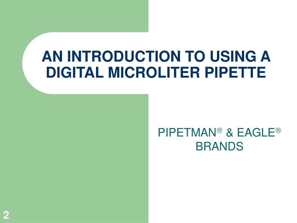 AN INTRODUCTION TO USING A DIGITAL MICROLITER PIPETTE PIPETMAN & EAGLE BRANDS