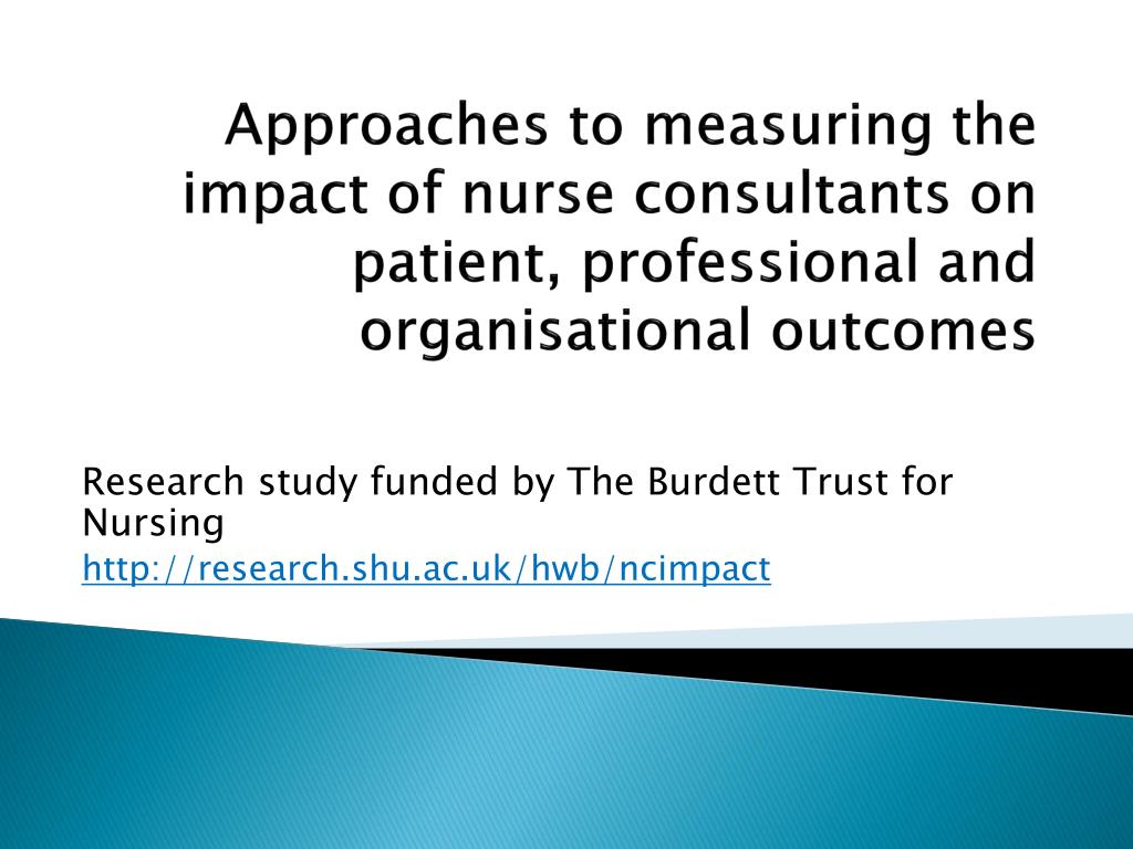 Approaches to measuring the impact of nurse consultants on patient, professional and organisational outcomes Research study funded by The Burdett Trust for Nursing http://research.shu.ac.uk/hwb/ncimpact