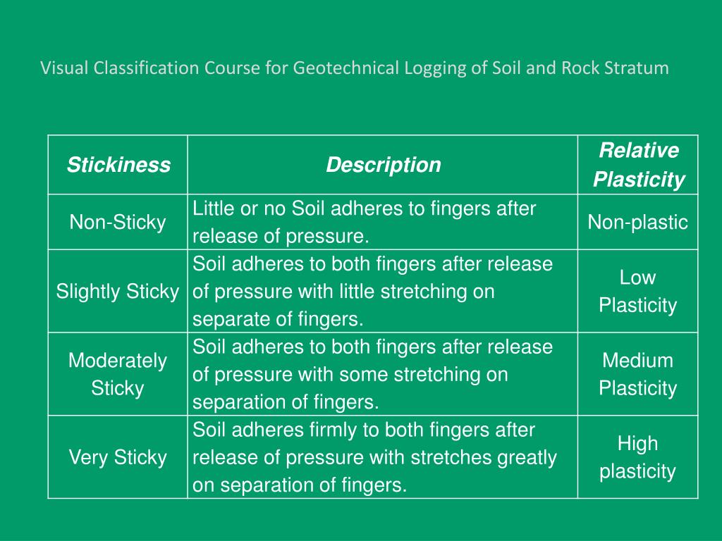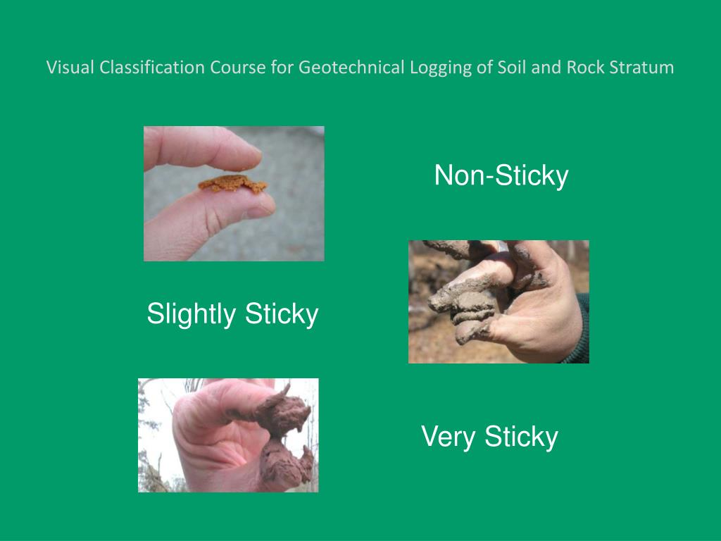 Visual Classification Course for Geotechnical Logging of Soil and Rock Stratum Non-Sticky Slightly Sticky Very Sticky