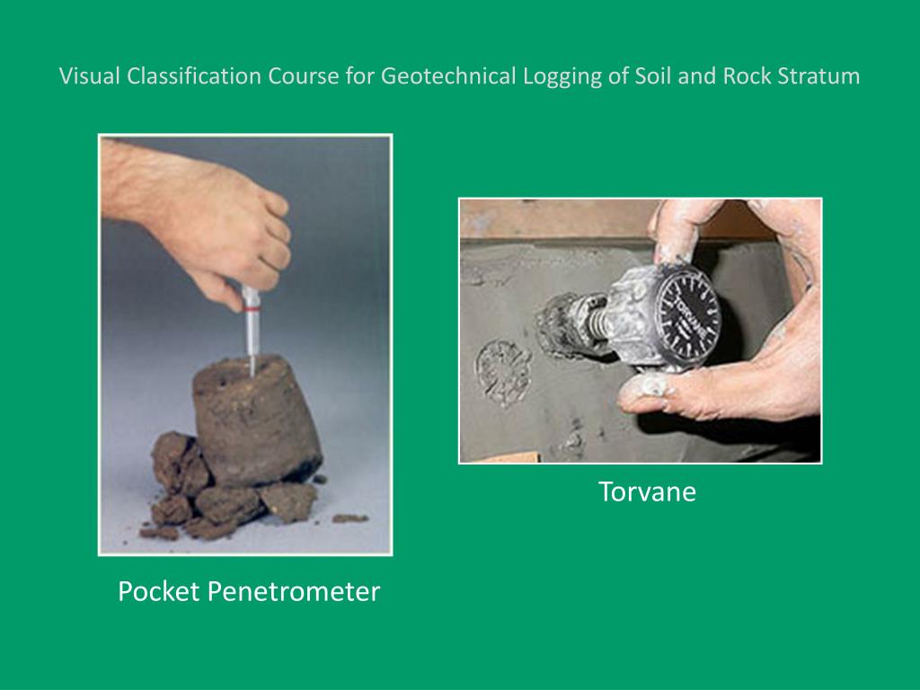 Visual Classification Course for Geotechnical Logging of Soil and Rock Stratum Pocket Penetrometer Torvane