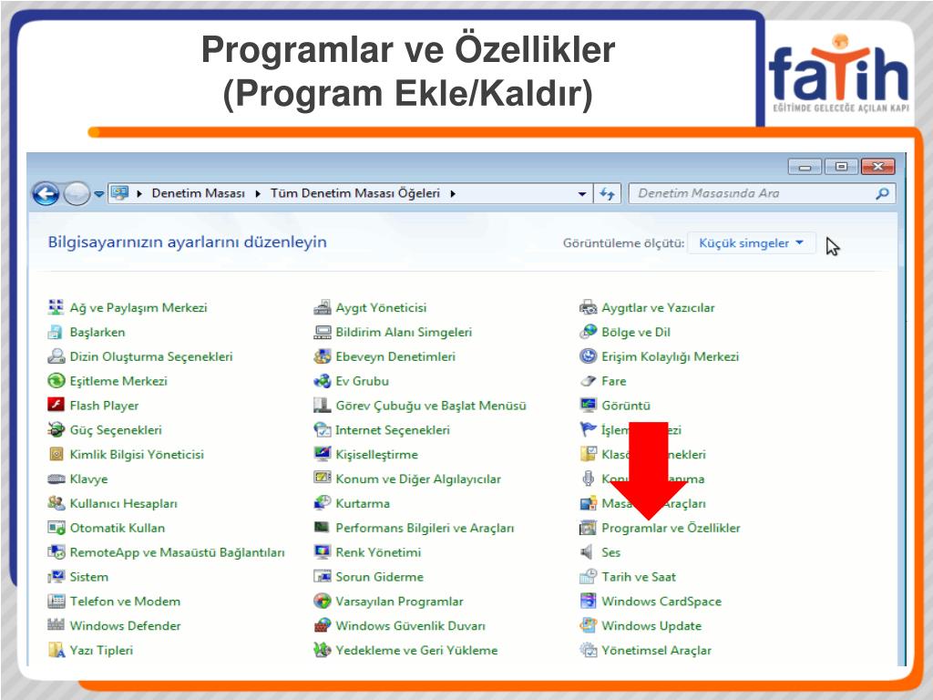 Programlar ve Özellikler(Program Ekle/Kaldır) Bilgisayarınızda yüklü olan programların listesi