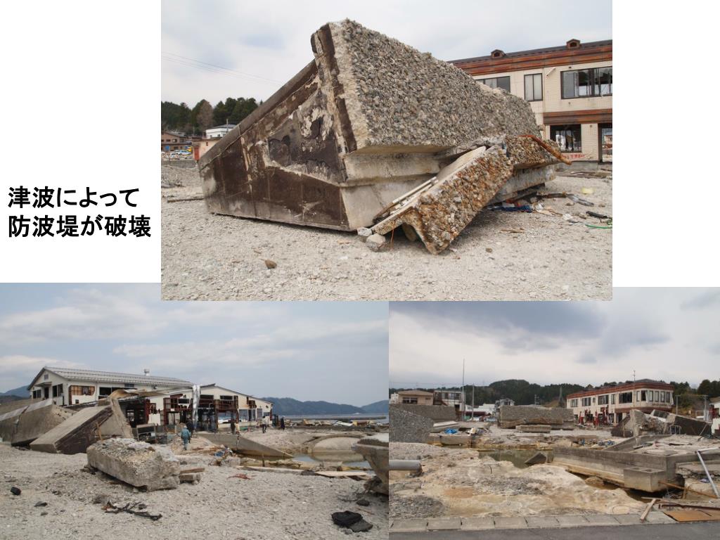 宮城県を移動中の様子 屋根の瓦が落ちている 津波で多くの車が流さていた