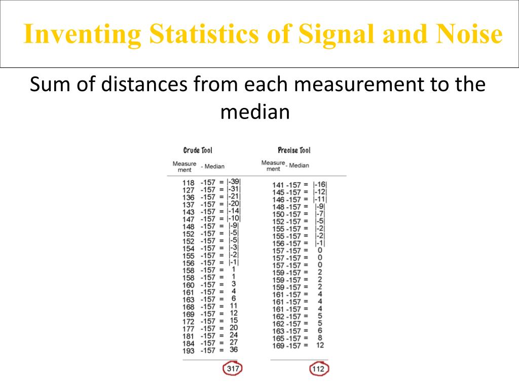 Inventing Statistics of Signal and Noise Sum of distances from each measurement to the median