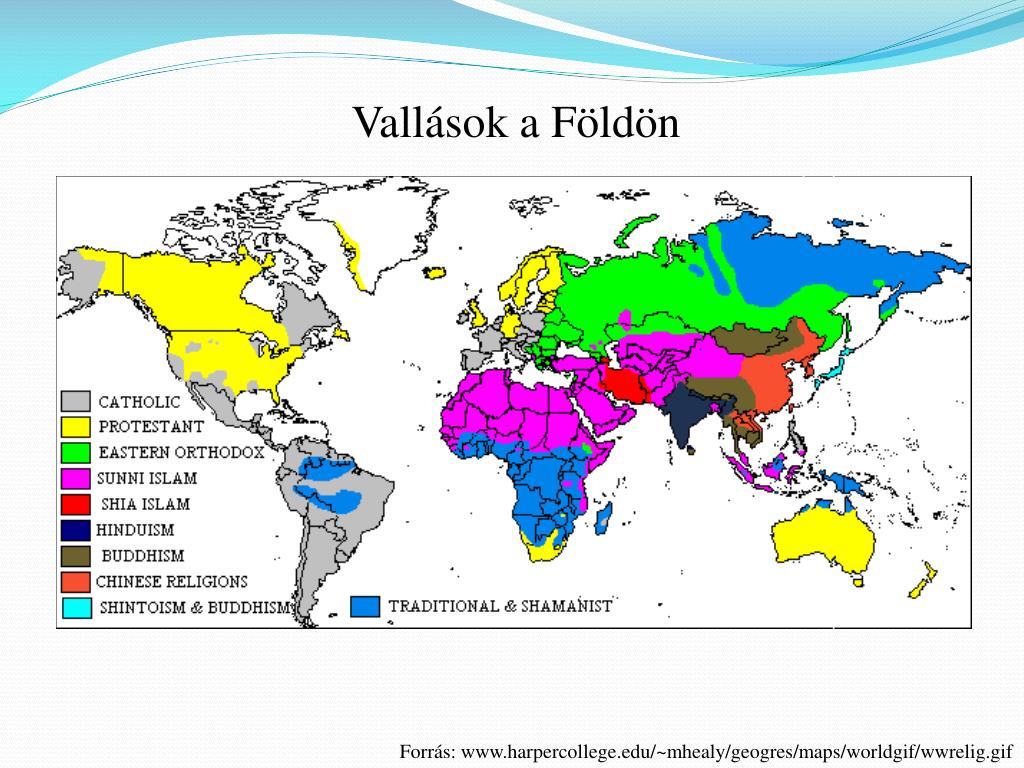 Vallások a Földön Forrás: www.harpercollege.edu/~mhealy/geogres/maps/worldgif/wwrelig.gif