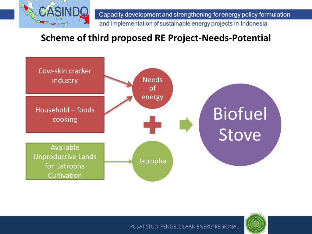 Scheme of third proposed RE Project-Needs-Potential Cow-skin cracker industry Household – foods cooking Available Unproductive Lands for Jatropha Cultivation