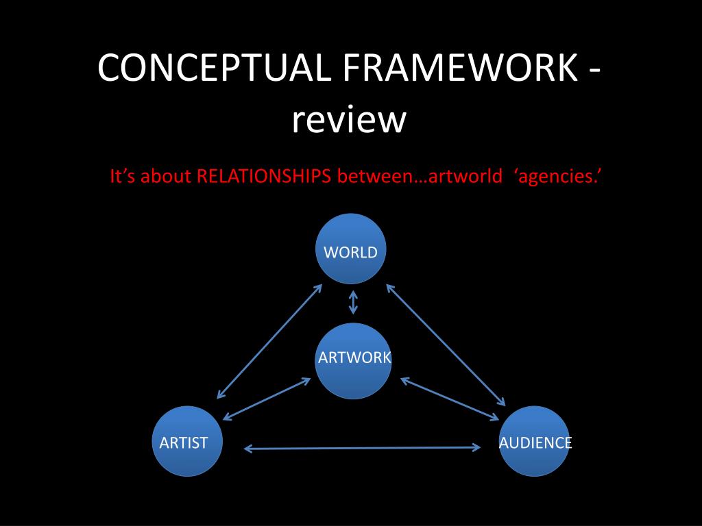 CONCEPTUAL FRAMEWORK - review WORLD It’s about RELATIONSHIPS between…artworld‘agencies.’ ARTWORK ARTIST AUDIENCE