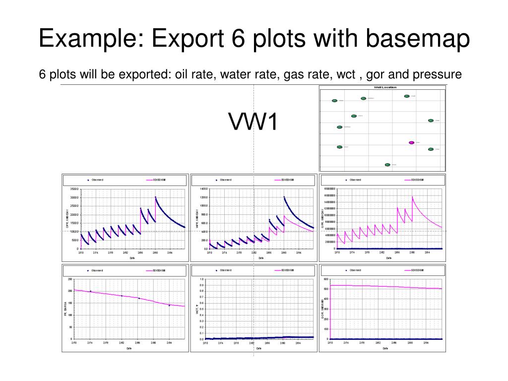 Example: Export 6 plots with basemap 6 plots will be exported: oil rate, water rate, gas rate, wct , gor and pressure