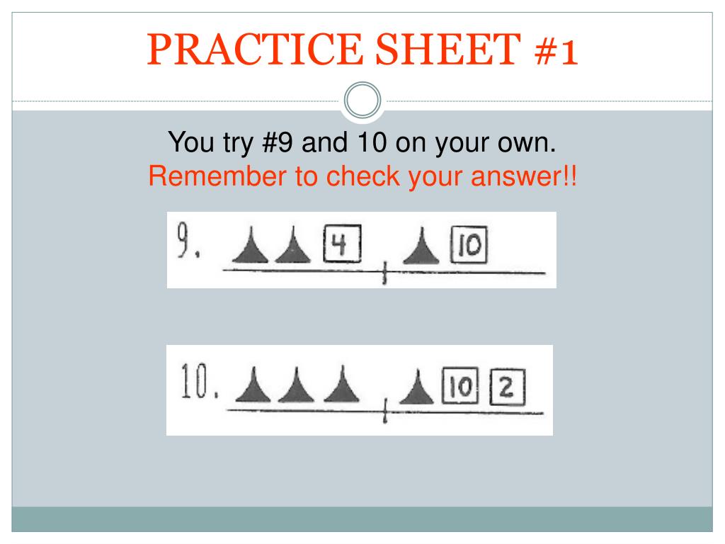 PRACTICE SHEET #2 You try #9 and 10 on your own. REMEMBER TO CHECK YOUR ANSWER.