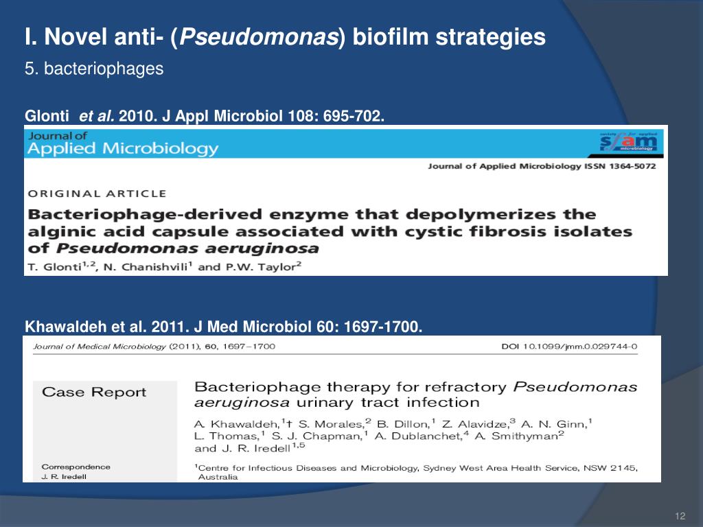 I. Novel anti- (Pseudomonas) biofilm strategies 5. bacteriophages Glonti et al. 2010. J Appl Microbiol 108: 695-702. Khawaldeh et al. 2011. J Med Microbiol 60: 1697-1700.