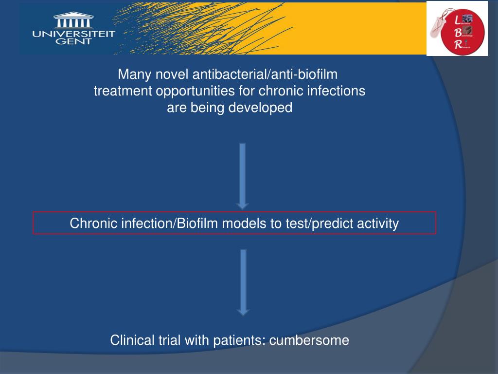 Many novel antibacterial/anti-biofilm treatment opportunities for chronic infections are being developed Clinical trial with patients: cumbersome Chronic infection/Biofilm models to test/predict activity