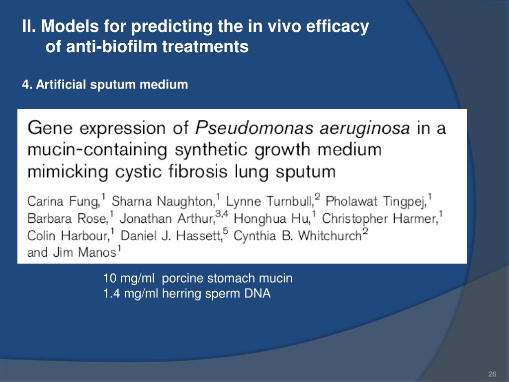 II. Models for predicting the in vivo efficacy of anti-biofilm treatments 4. Artificial sputum medium 10 mg/ml porcine stomach mucin 1.4 mg/ml herring sperm DNA